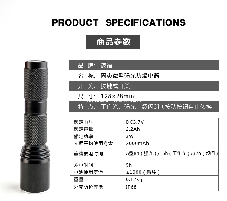 谋福 CNMF 649 消防头灯 固态微型强光电筒 消防员头 盔灯 3种灯光